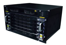 以ATCA-NTW6401機(jī)箱為例,這是一款基于ACTA標(biāo)準(zhǔn)(PICMG3.0 R2.0)的6槽機(jī)箱。機(jī)箱從下往上分別為0至5號(hào)槽,采用前后對(duì)插形式,符合ATCA規(guī)范的單板均能插入機(jī)箱使用。機(jī)箱由機(jī)框單元、通風(fēng)防塵單元、風(fēng)扇單元和電源單元組成。0號(hào)槽為交換控制板槽(插入ATCA-SC640),1-5號(hào)槽為線卡槽(插入HFC602、CNT8、CNT16、PFC802等),背板連接采用單交換板構(gòu)造。機(jī)箱采用雙電源冗余設(shè)計(jì),電源電壓為標(biāo)準(zhǔn)220V AC或者48V DC電壓。高集成度設(shè)計(jì)理念提供了更高密度的接口,在單位體積內(nèi)為用戶提供了更高密度的處理接口,為用戶節(jié)省了大量的機(jī)柜空間和采購(gòu)維護(hù)成本。圖2中,滿配了5塊ATCA-PFC802。
