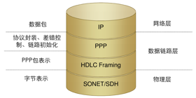 40G POS采集器用于城域鏈路或廣域鏈路中Packet Over Sonet/SDH的流量采集、過(guò)濾、分流設(shè)備。40G POS采集器的輸入流量為OC768(STM256)鏈路,實(shí)際鏈路容量39813.12G bps。 從IP層到Sonet/SDH的基本封裝結(jié)構(gòu)如圖1所示。40G POS采集器基本功能是從SDH的幀中進(jìn)行層層剝離,提取出IP報(bào)文,然后對(duì)IP報(bào)文執(zhí)行多元組過(guò)濾,根據(jù)多元組過(guò)濾的結(jié)果指定輸出的端口(可跨板)、指定輸出的MAC地址,同時(shí)攜帶匹配ID等信息將10G以太網(wǎng)報(bào)文輸出到后端分析系統(tǒng)。
